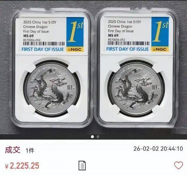 先跟大家说个大前提,今年贵金属市场是真的火,国际白银价格一路狂飙,2025年全年涨幅快150%,2026年初直接冲破110美元/盎司,说白了,沾了银的东西,价格都跟着水涨船高。中国龙银币作为央行发行的法定银币,借着这波东风,再加上“龙图腾”这个中国人都认的IP,直接爆火,这也是它被炒起来的核心原因之一。