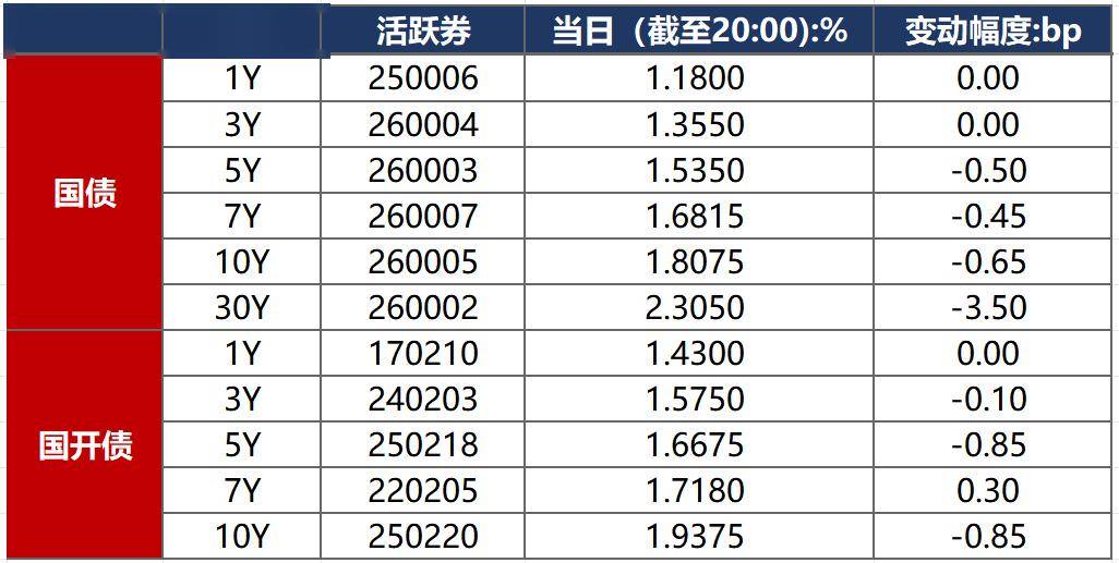 4月10日,当日公布的3月CPI数据令通胀担忧缓解,带动债市整体偏强运行。截至北京时间20:00,10年期国债活跃券260005收益率下行0.65bp至1.8075%,10年期国开债活跃券250220收益率下行0.85bp至1.9375%。