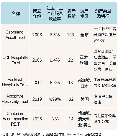 新加坡的酒店REITs种类则更加丰富,且基金资产包覆盖全球,产品创新活跃。目前上市的5支基金各具特色: