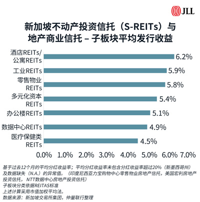 值得注意的是,相较于数据中心、物流园区等热门资产类型,在新加坡的酒店REITs能普遍实现更高的分派率,仲量联行认为,主要原因涵盖以下三点: