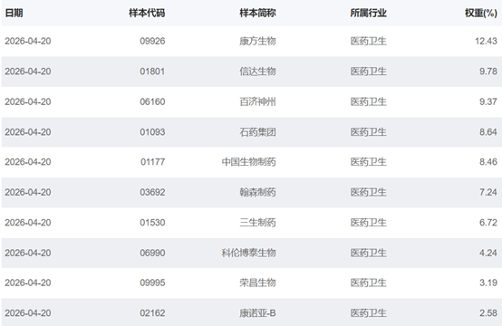 另据国证指数网数据显示,截至2026年4月20日,港股通创新药指数前十大成分股权重占比超70%,龙头效应更为显著。此外,该指数调样频率为每季度调整一次,有望更快速地反映港股创新药市场变化。