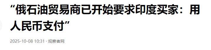 信息来源:“俄石油贸易商已开始要求印度买家:用人民币支付”——2025-10-08 10:31·观察者网