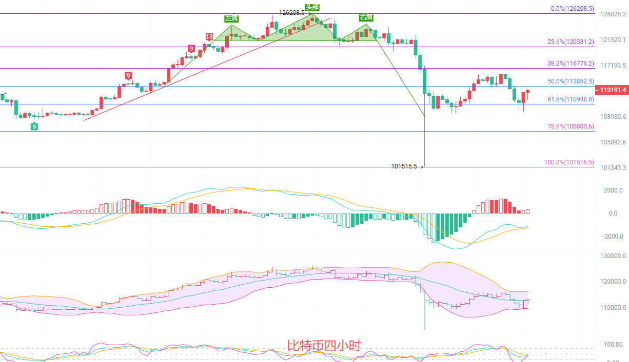 比特币现价113200,现在是北京时间凌晨两点半,昨天的标题够醒目了吧,不要好了伤疤忘了疼,有粉丝在115500北上被我劝离了,悬崖勒马果断南下,否则这一波五千点就跟你无缘了,很明显昨天开篇就说了U形扳回失效,空势延续,现在出现了新的看空指标就看早上八点日线收盘以后如法扳回那就空势延续不需要犹豫继续空,若收盘回到了115000,那就做短线空,