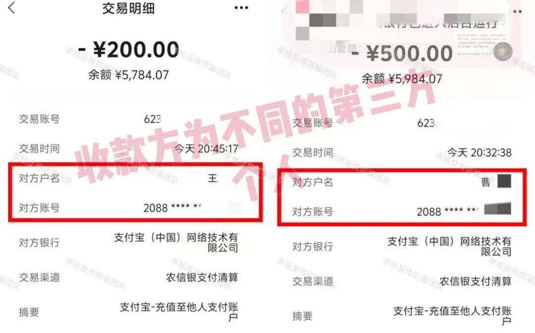 注意!此类模式为典型骗局。先以小额红包吸引用户参与、博取信任,再套取用户银行卡及身份证等敏感信息,可能被用于“洗钱”等违规违法活动。