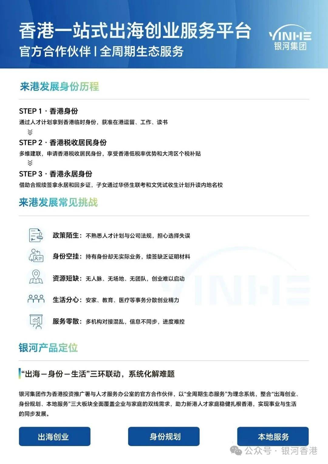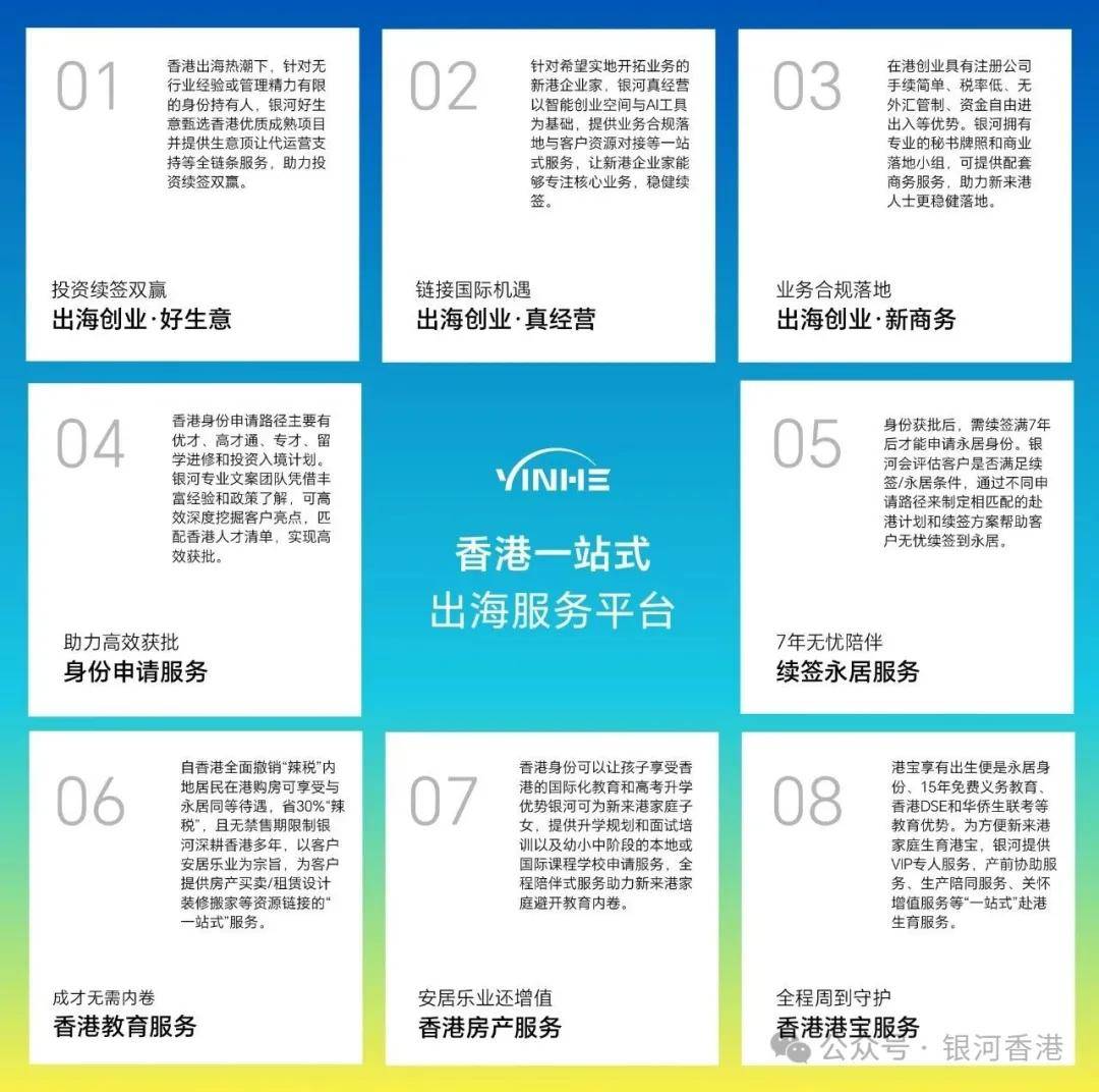 银河集团是一站式出海创业服务平台,可以为大家构建业务出海+身份规划+税务规划三环联动,避免香港公司空壳化,构建商业实质,解决香港税务身份问题。