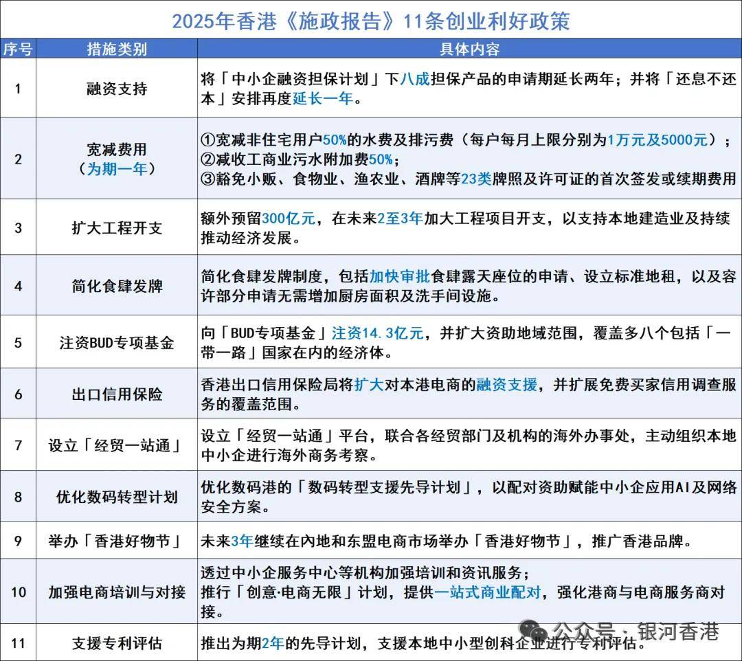 ✅创业支持计划:香港政府为鼓励特定行业发展,提供研发支出加计扣除、过BUD专项基金、创企业税务豁免等优惠,2025年施政报告更是直接宣布11项支持中小企业来港创业的利好措施。